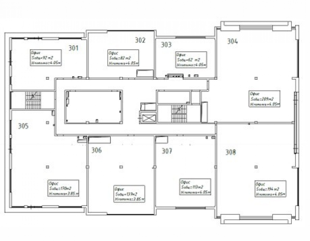 3 этаж: 1332 м2, высота потолка 3,6 м, балкон