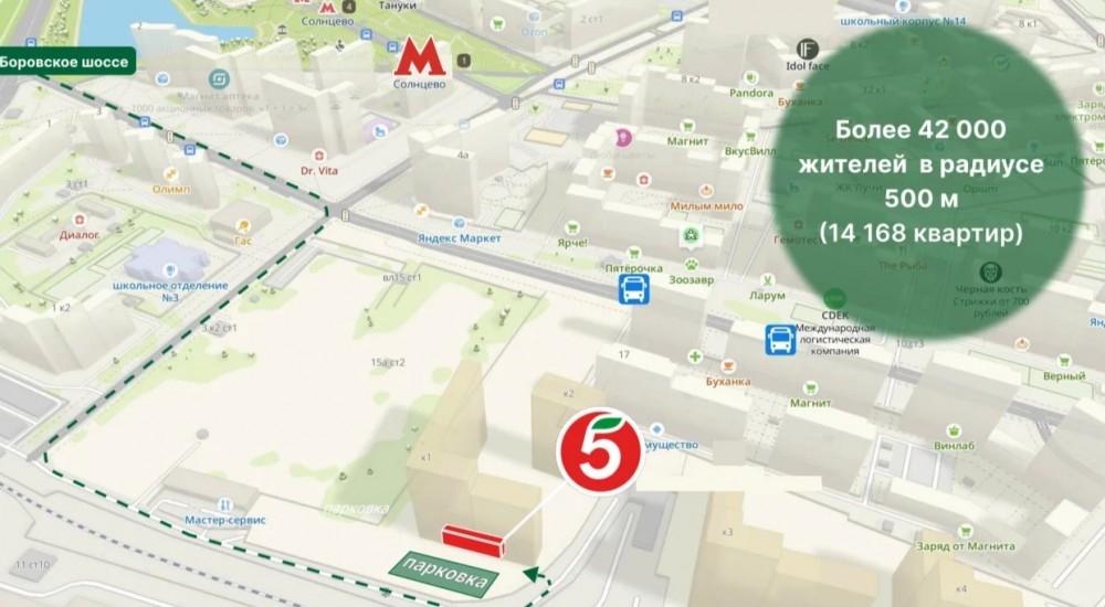 Продажа арендного бизнеса Торговая площадь с сетевым арендатором “Пятерочка” на первом этаже среди густонаселенного жилого массива ЖК Лучи, по адресу ул. Производственная, 19к1, Первая линия. Большие витрины, более 14 0000 домохозяйств в радиусе 500 м.. Сверхинтенсивный трафик, большой ЖК! 4 отдельных входа.