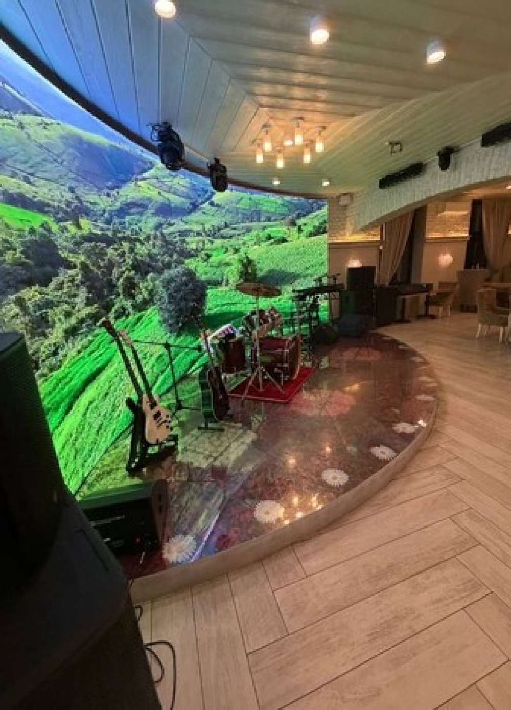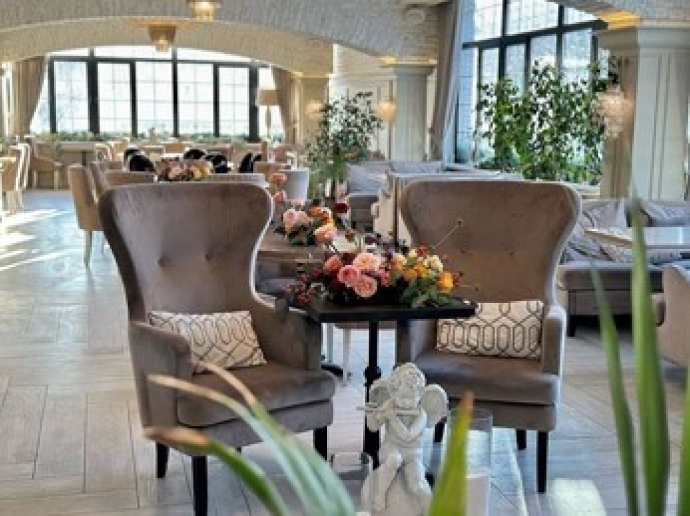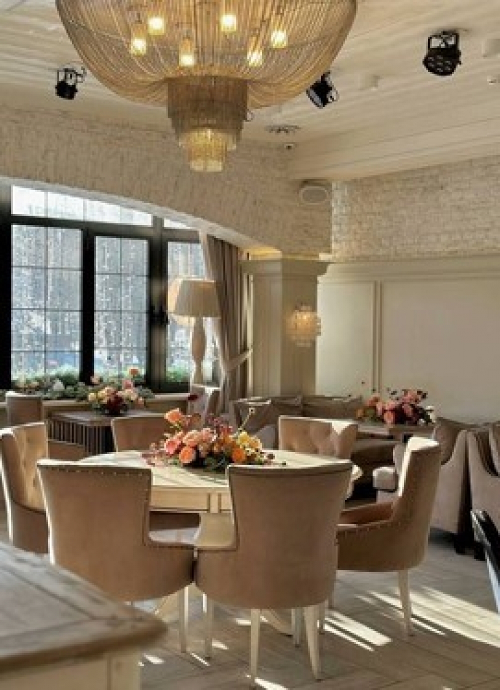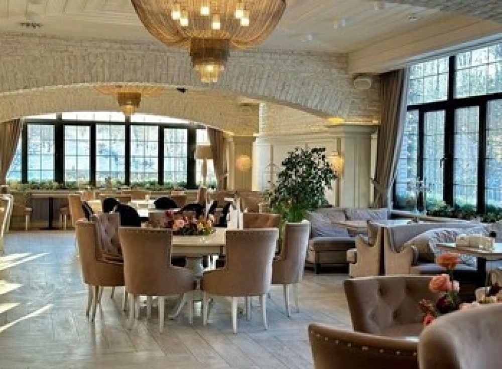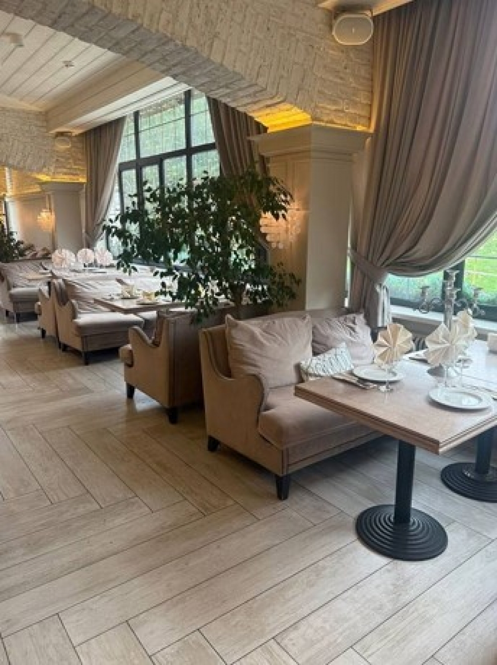 1 этаж - зал на несколько столов, ресепшн, оборудованная летняя терраса,