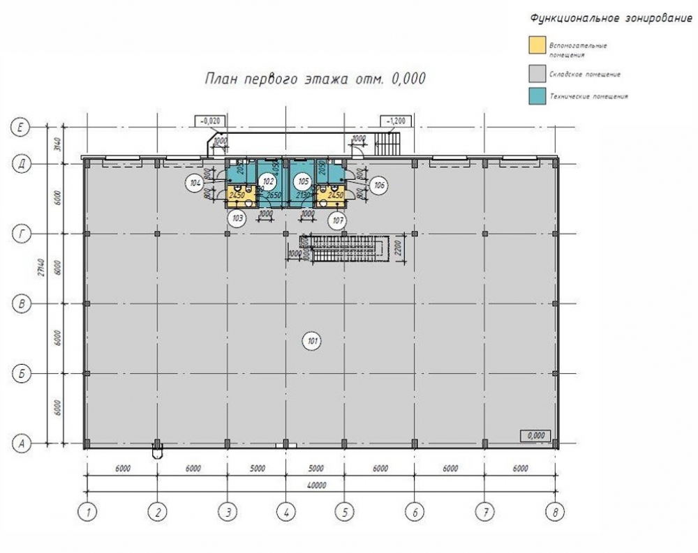 — Рабочее пространство пола без колонн. Колонны по периметру и под антресолью.