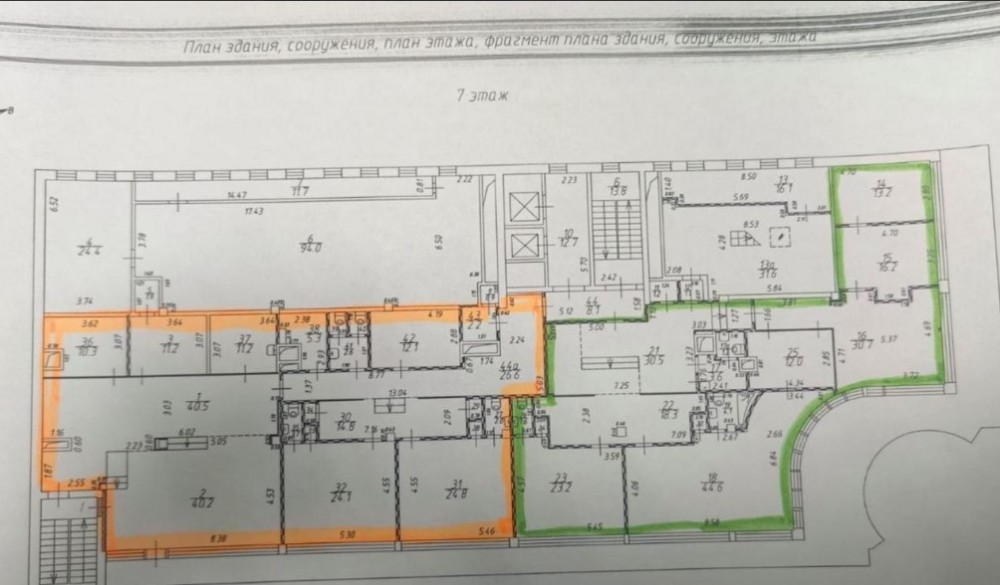 Офис расположен на 7-м этаже, кабинетная планировка, стандартная офисная отделка, свои с/у. Установлена приточная вентиляция и кондиционирование. Потолки 3м.
