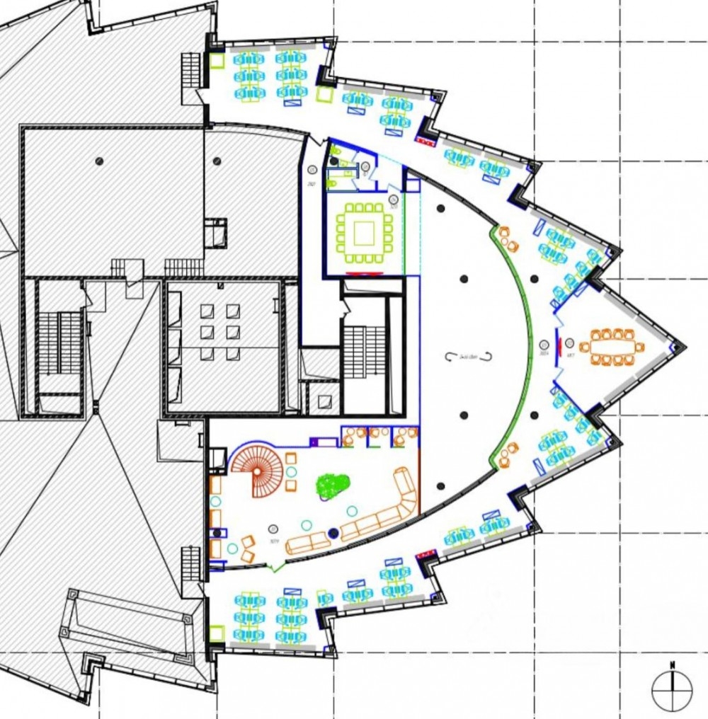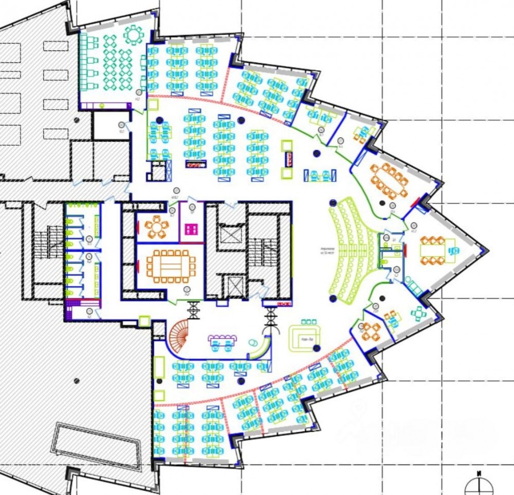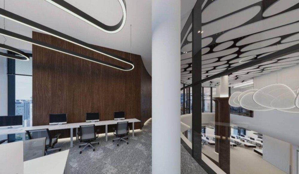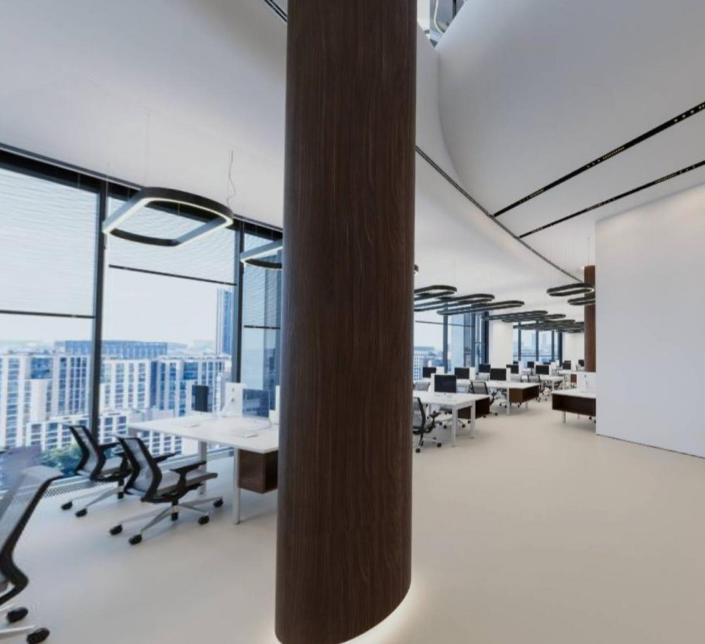 Верхний 18-ый этаж, вид на набережную, панорамное остекление. Офис двухуровневый с потолками до 12м, свой лифт с первого этажа, смешанная планировка (зона ресепшен, амфитеатр, кафетерий, переговорные, кабинет руководителя, 5 отдельных кабинетов, 2 больших открытых пространства, свои санузлы, места для отдыха), премиальная офисная отделка. Установлена приточная вентиляция и кондиционирование.