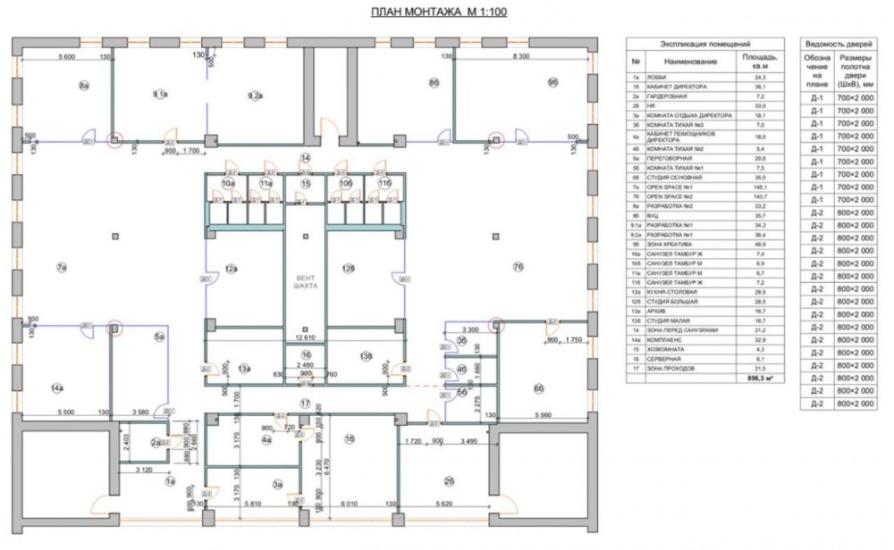 выполнена стандартная офисная отделка