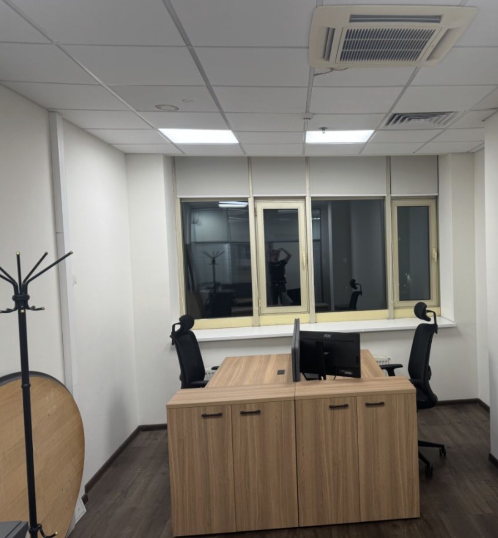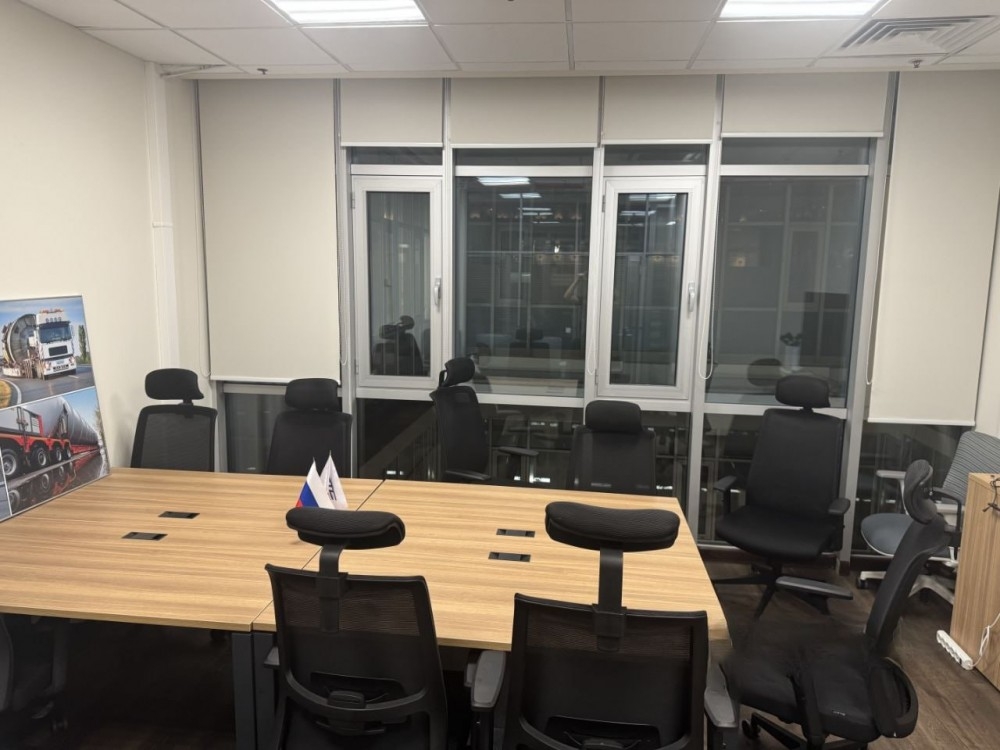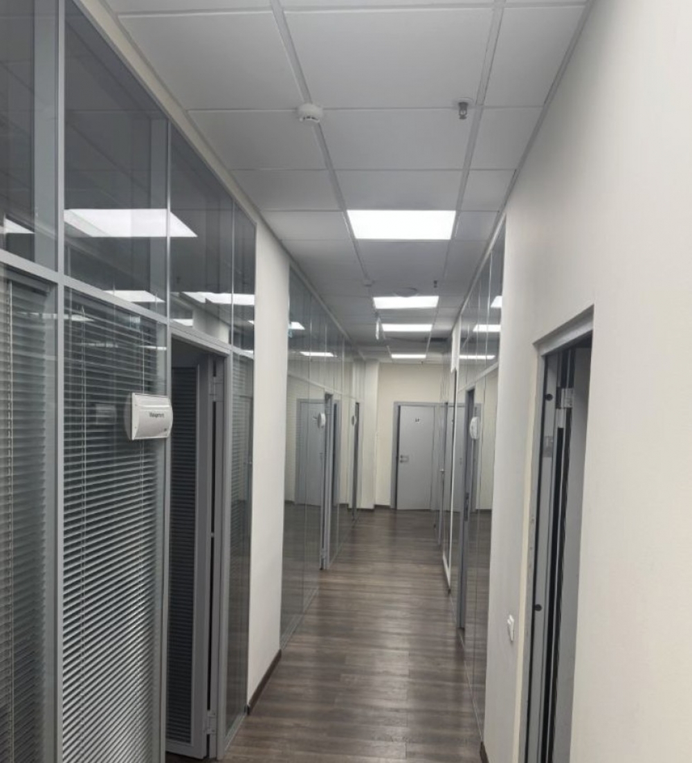 Офис расположен на43-м этаже, кабинетная планировка, есть зона кухни и свои с/у. Стандартный офисный ремонт.