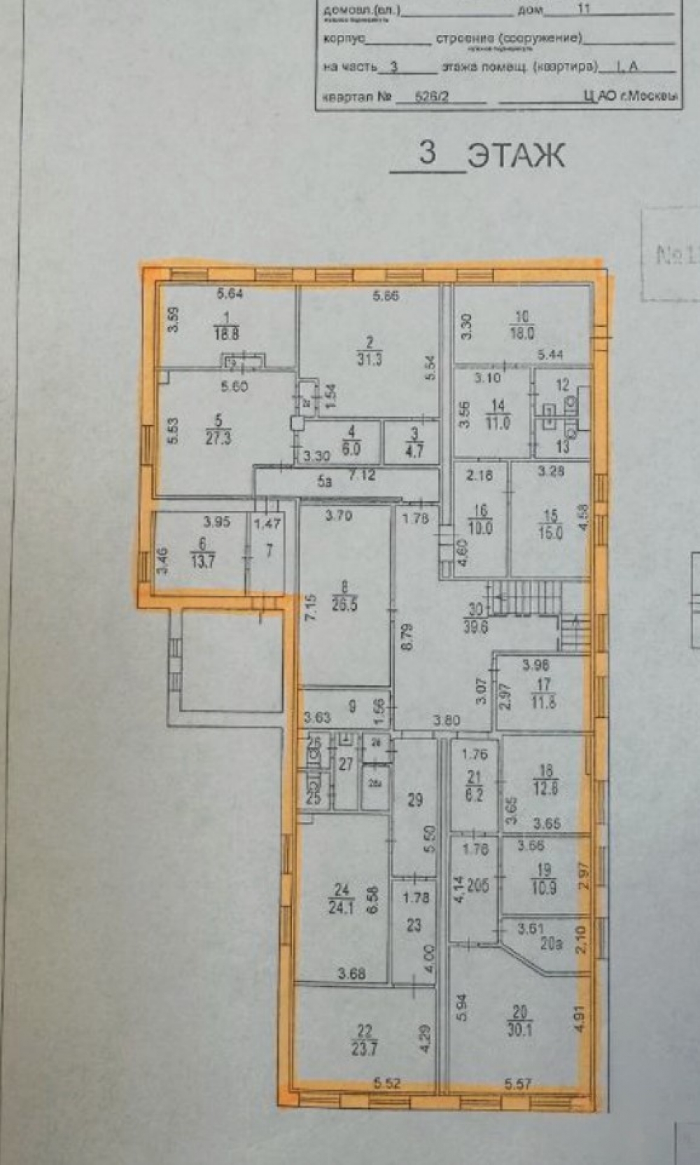 Помещение расположено на 3-м этаже (здание без лифта). Кабинетная планировка, 3 санузла. Офис размещает до 30 человек. Есть видео наблюдение.В арендную плату включены КУ и эксплуатация.