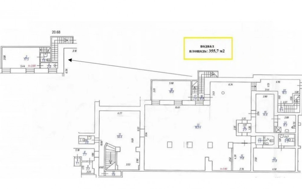 Общая площадь: 523,5 м² (двухэтажное помещение)