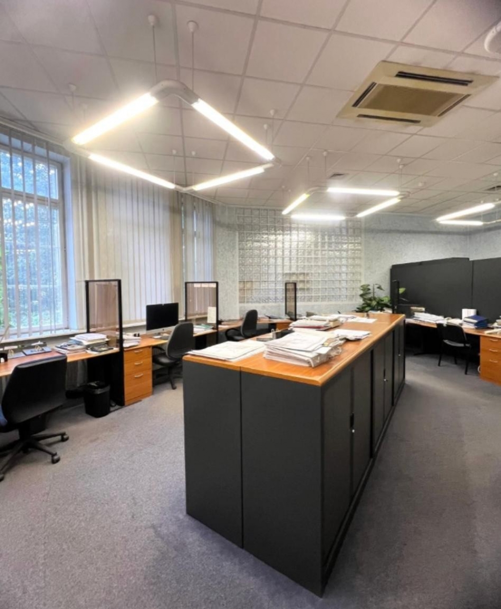 Офис расположен на первом этаже клубного жилого дома, 2 входа, много окон. Площадь 308м2, смешанная планировка с зоной ресепшн. Офис с качественным ремонтом. Установлены системы вентиляции и кондиционирования. Потолки 3,8м, с учетом систем кондиционирования 3,4м. Выделенная мощность 27квт.