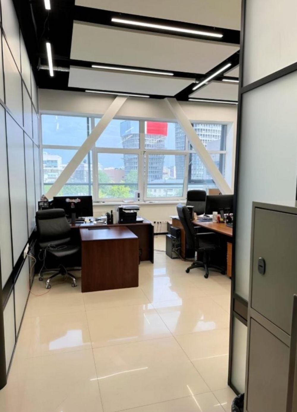 выполнена стандартная офисная отделка