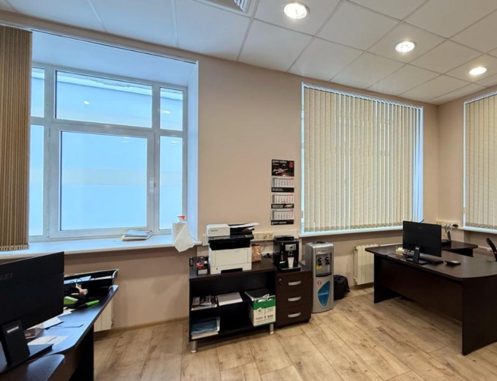 Офис расположен на 3-м этаже, есть лифты. Офис кабинетной планировки, стандартный ремонт за выездом арендатора. Установлена приточная вентиляция и кондиционирование.