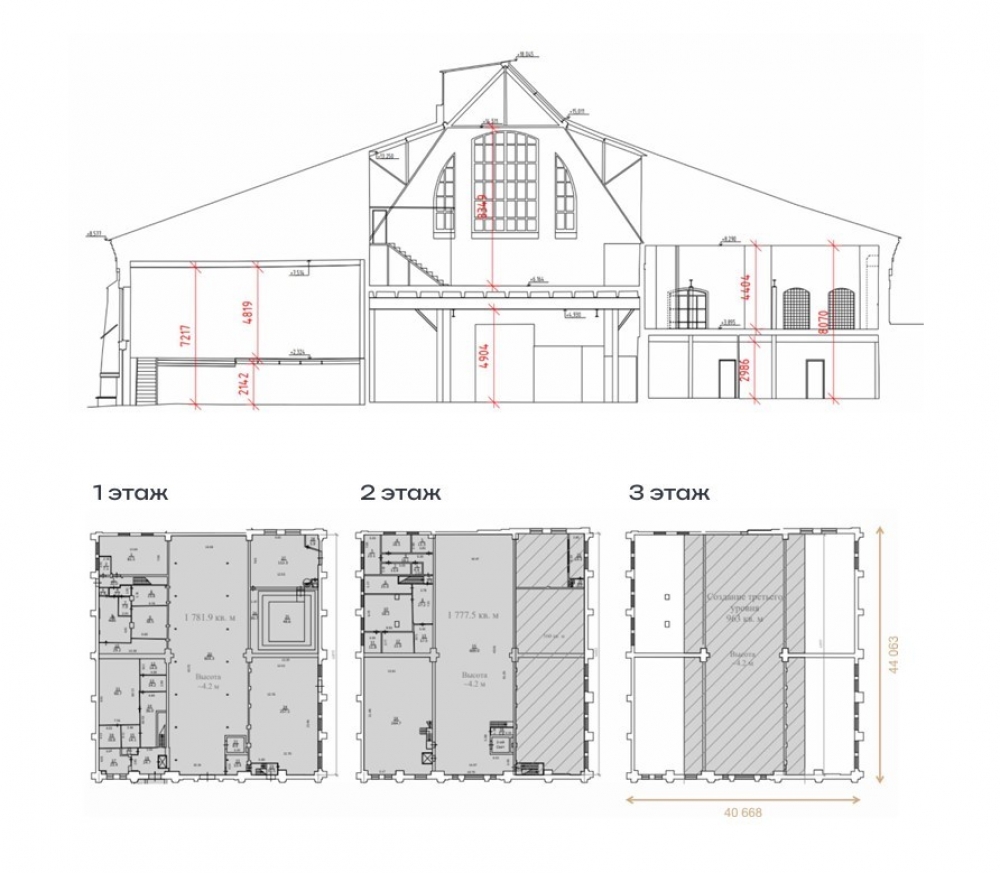 Внутренняя отделка предлагает свободные площади с высокими потолками от 4,9 до 8,3 метров, создающими неповторимую атмосферу.