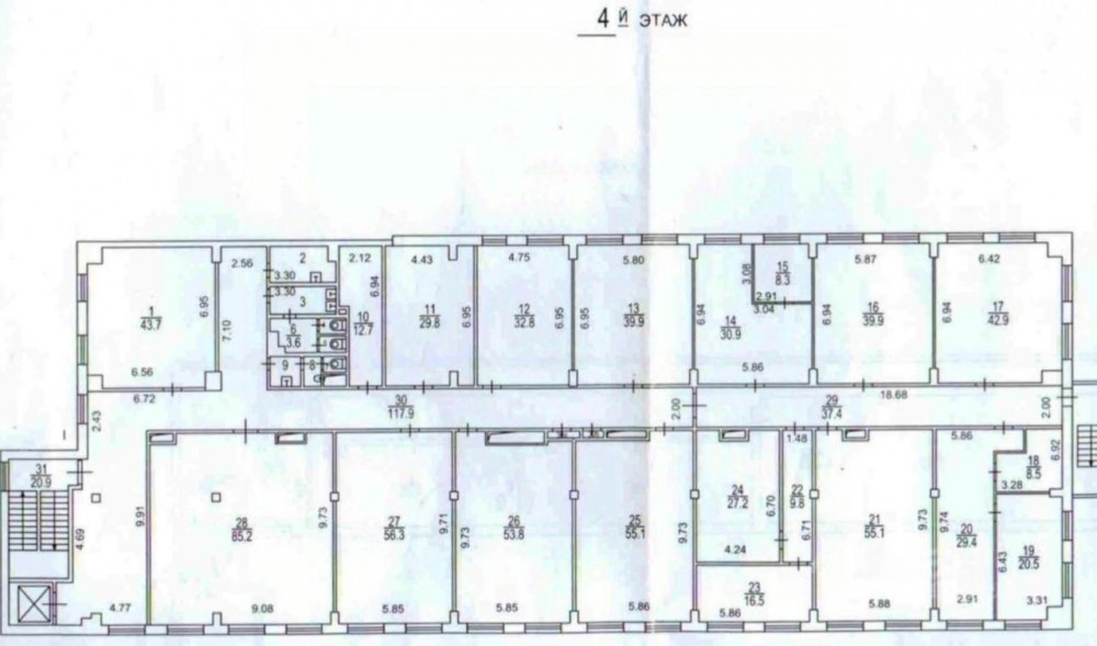 Офисный блок расположен на 4-м этаже, смешанная планировка, есть зона кухни и свои с/у, стандартный офисный ремонт. Установлена приточно-вытяжная вентиляция и кондиционирование.
