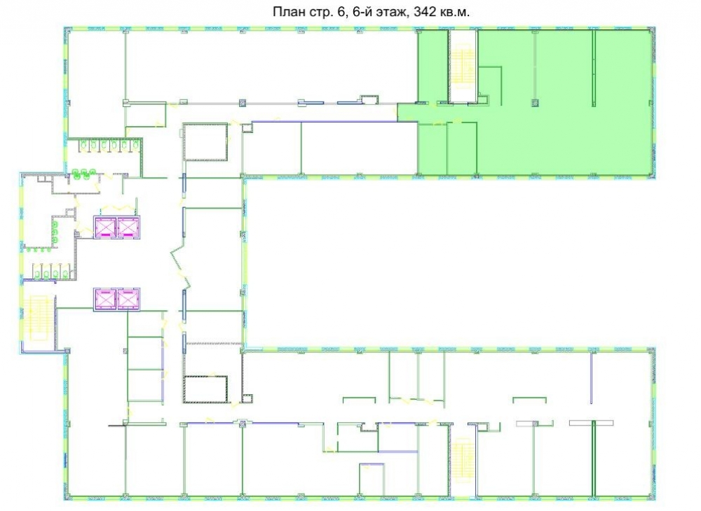 Строение 6, шестой этаж. Полезная площадь 342м2. Смешанная планировка на 45 рабочих мест, ресепшн, гардеробная, с/у на этаже. Выполнена офисная отделка. Установлены системы приторно-вытяжной вентиляции и кондиционирования.