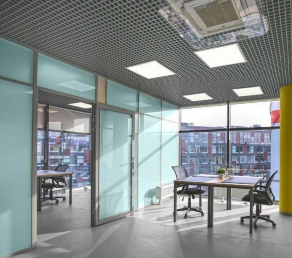 выполнена стандартная офисная отделка