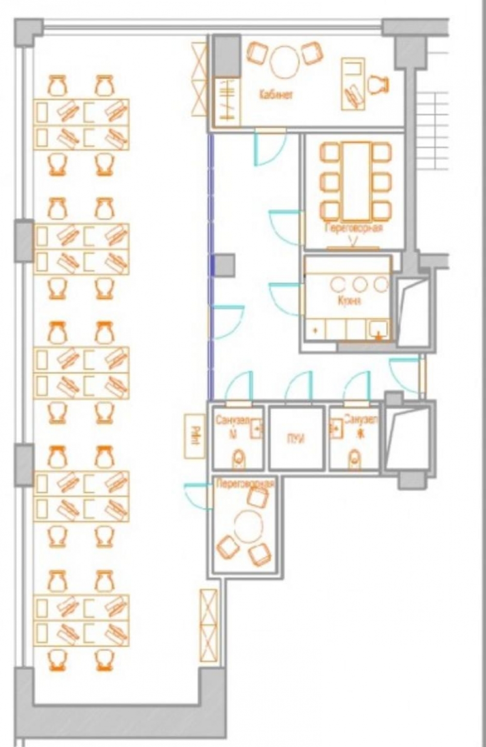 выполнена стандартная офисная отделка