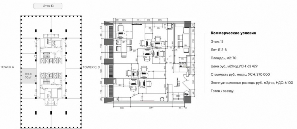 - Этаж: 13/23 (Башня В)