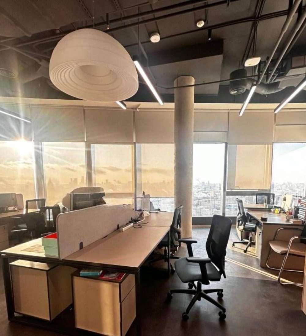 Офис занимает 34-ый этаж. Помещение смешанной планировки, качественный офисный ремонт, есть зона кухни и свой с/у. Установлена приточно-вытяжная вентиляция, кондиционирование.