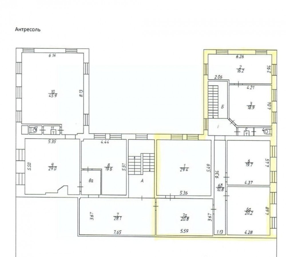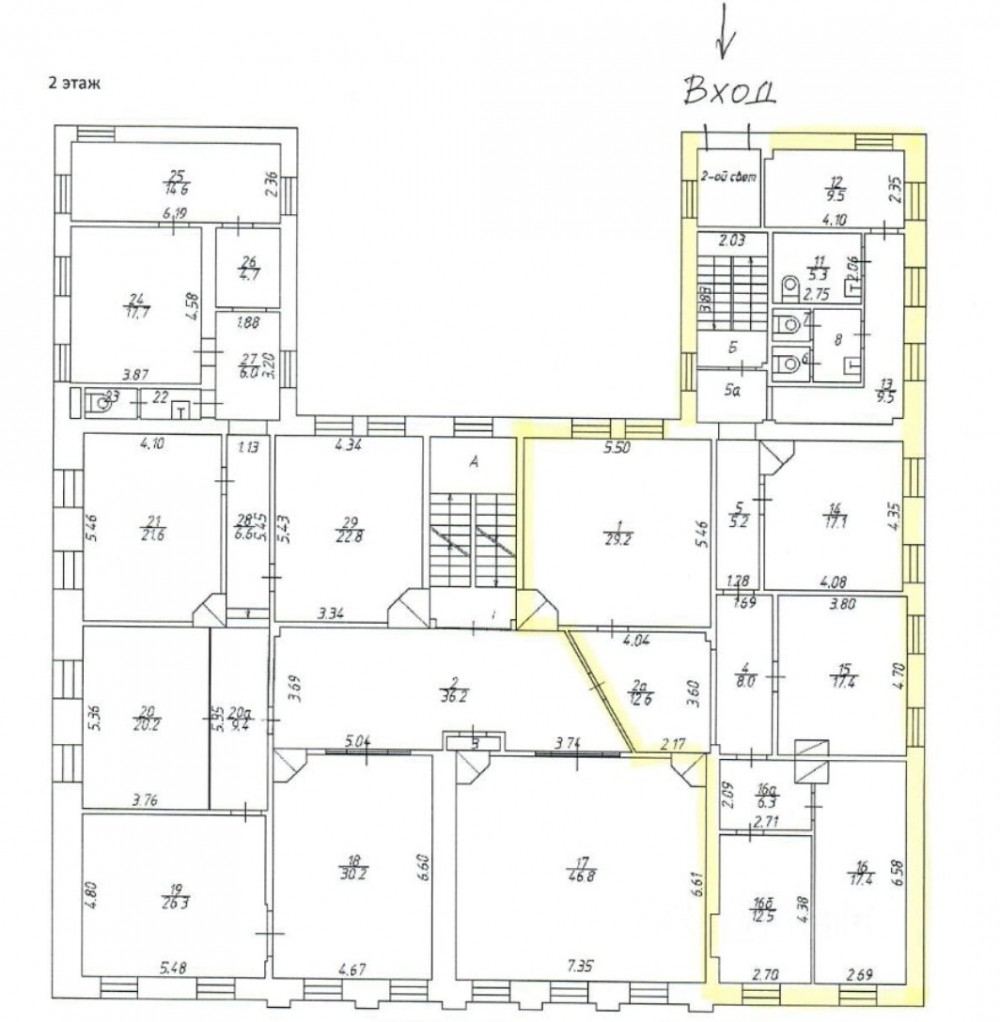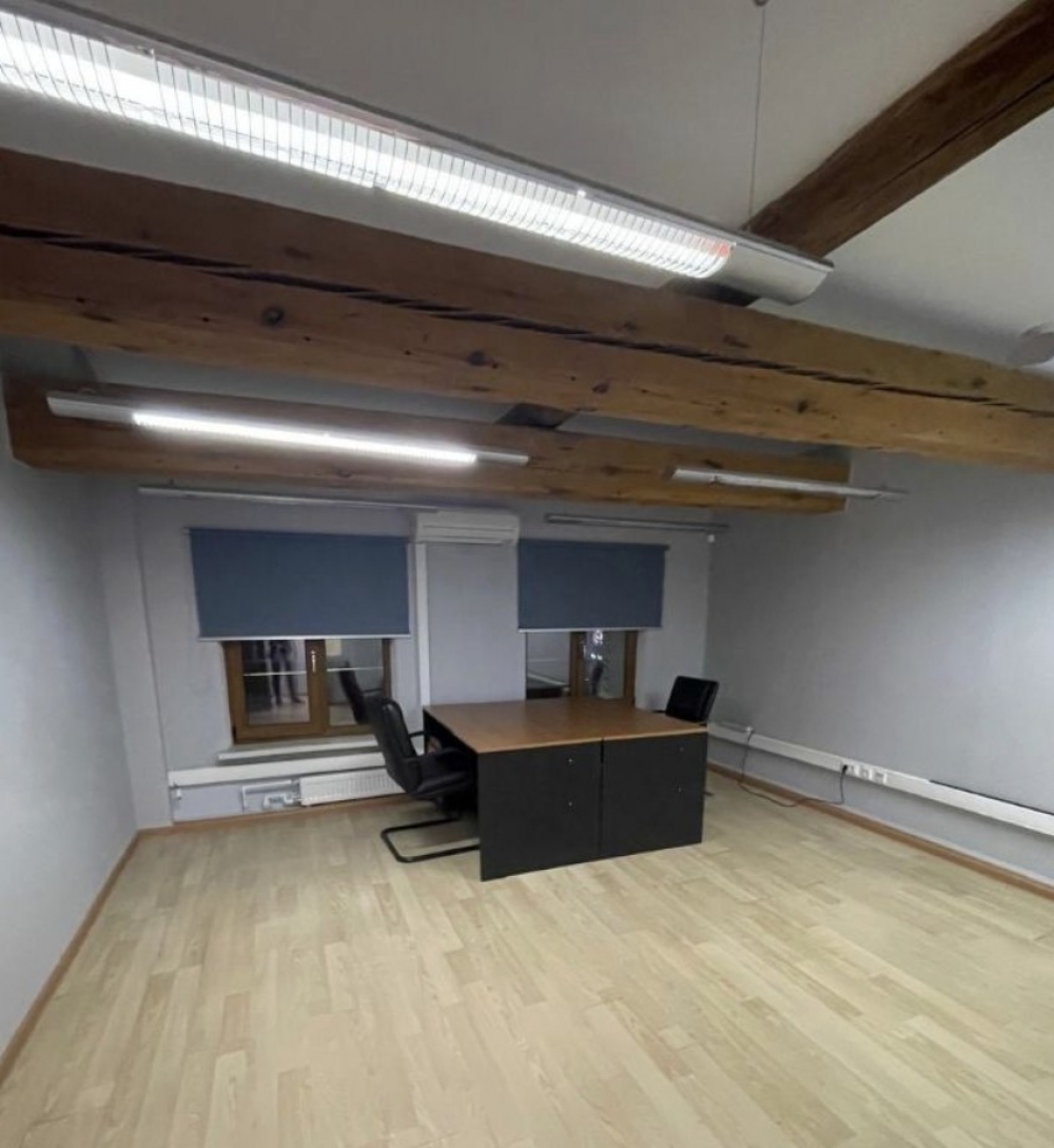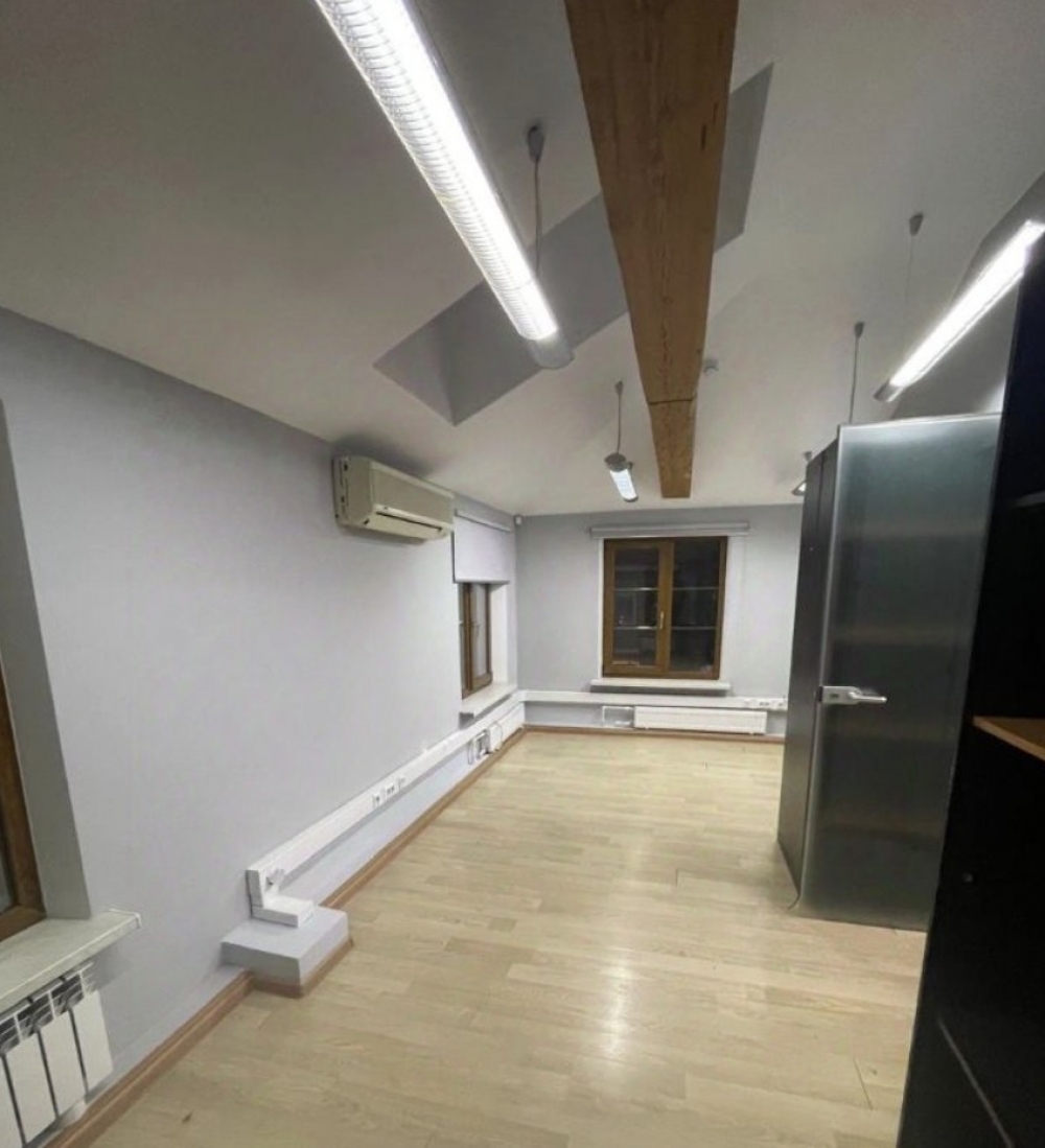 Офис расположен на 2-м и 3-м этажах, общая площадь 323м2, качественный ремонт, свой с/у и кухня. В здании приточно-вытяжная вентиляция, кондиционирование, высокие потолки.