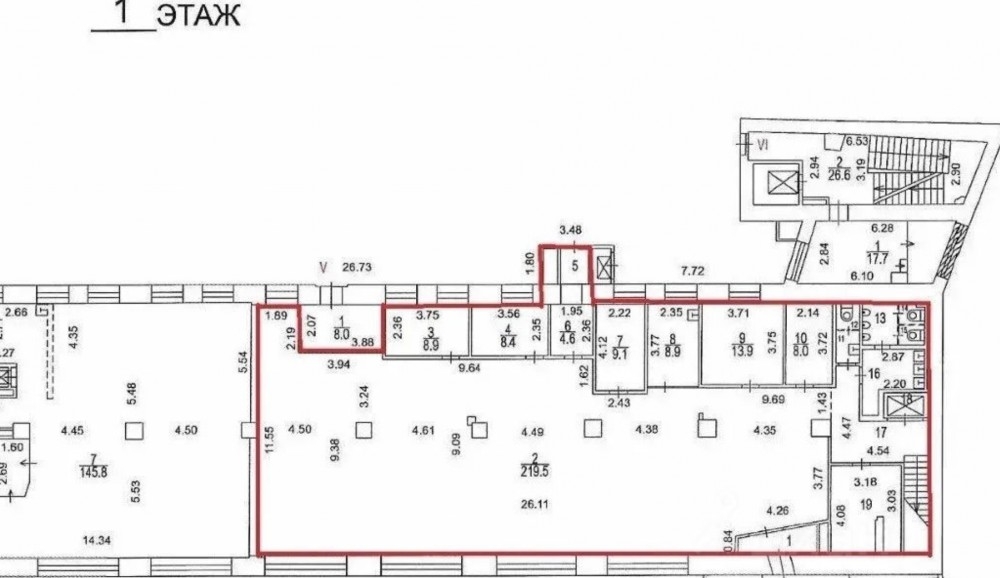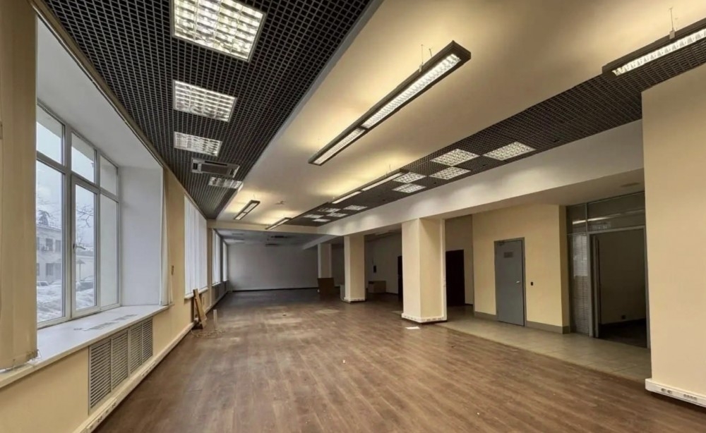Первый этаж, отдельный вход с фасада и дополнительный со двора. Помещение смешанной планировки (зона open-space 219м2 и кабинеты, есть своя кухня и с/у), много окон, потолки до 3,5м. Необходим небольшой косметический ремонт. Установлены системы приточно-вытяжной вентиляции и кондиционирования.