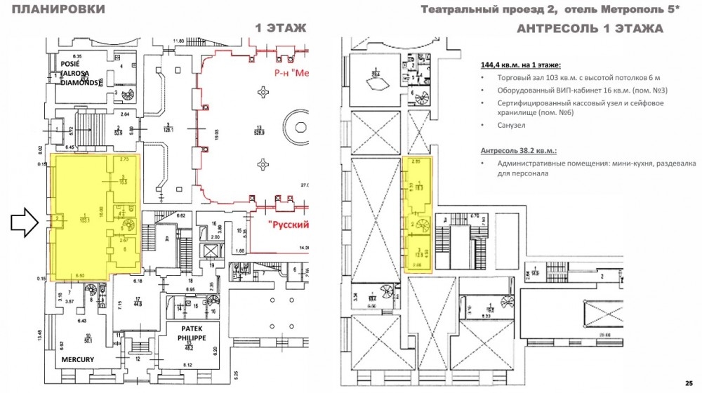 Предлагается в аренду торговое помещение в отеле "Метрополь" 5*. В самом центре города.