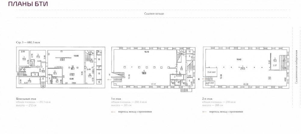 стр. 3: 680,5 м2. 1 эт. - 230,4 м2, 2 эт. - 239 м2, цоколь - 211,1 м2;