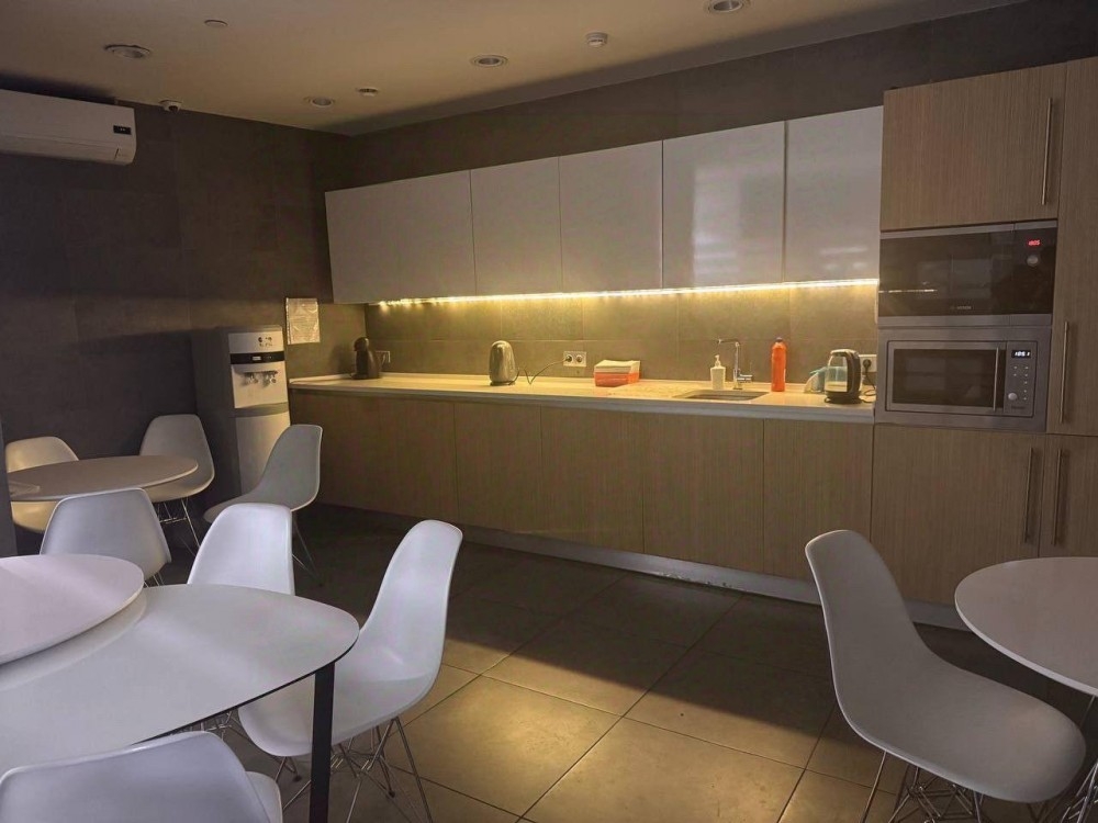 В офисных помещениях выполнен дизайнерский ремонт с применением качественных материалов. На этаже расположена удобная кухня, зона ресепшен. Кабинеты имеют панорамное остекление. Во всех кабинетах выполнена разводка под рабочие места.