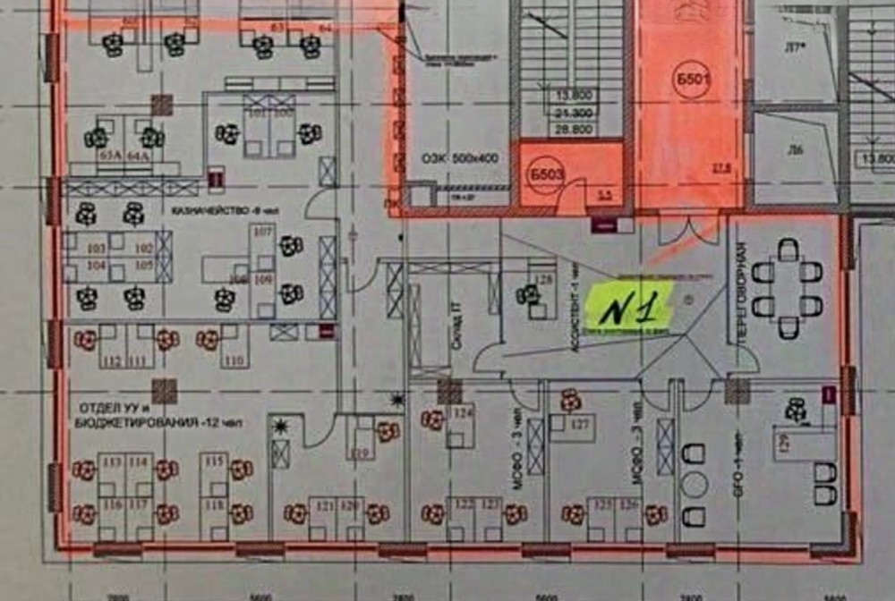 Офис расположен на 5-м этаже, смешанная планировка, с/у рядом с блоком. Стандартный офисный ремонт.