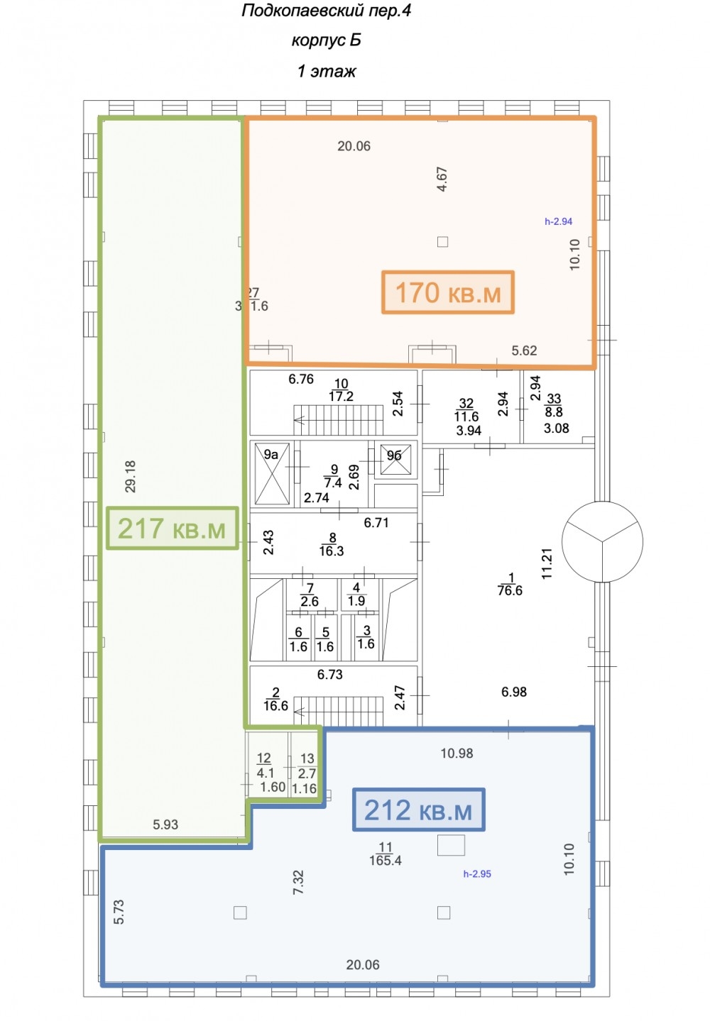 Офис площадью 170м2 расположен на 1-м этаже корпуса В, свободная планировка, качественная отделка. В помещении приточно-вытяжная вентиляция, сплит-системы кондиционирования.