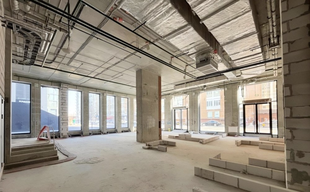 Помещение на первом этаже с двумя отдельнымы входами с фасада плюс вход из внутренней торговой галереи. Свободная планировка, витринное остекление, потолки 5,45м. Вытяжка под общепит.