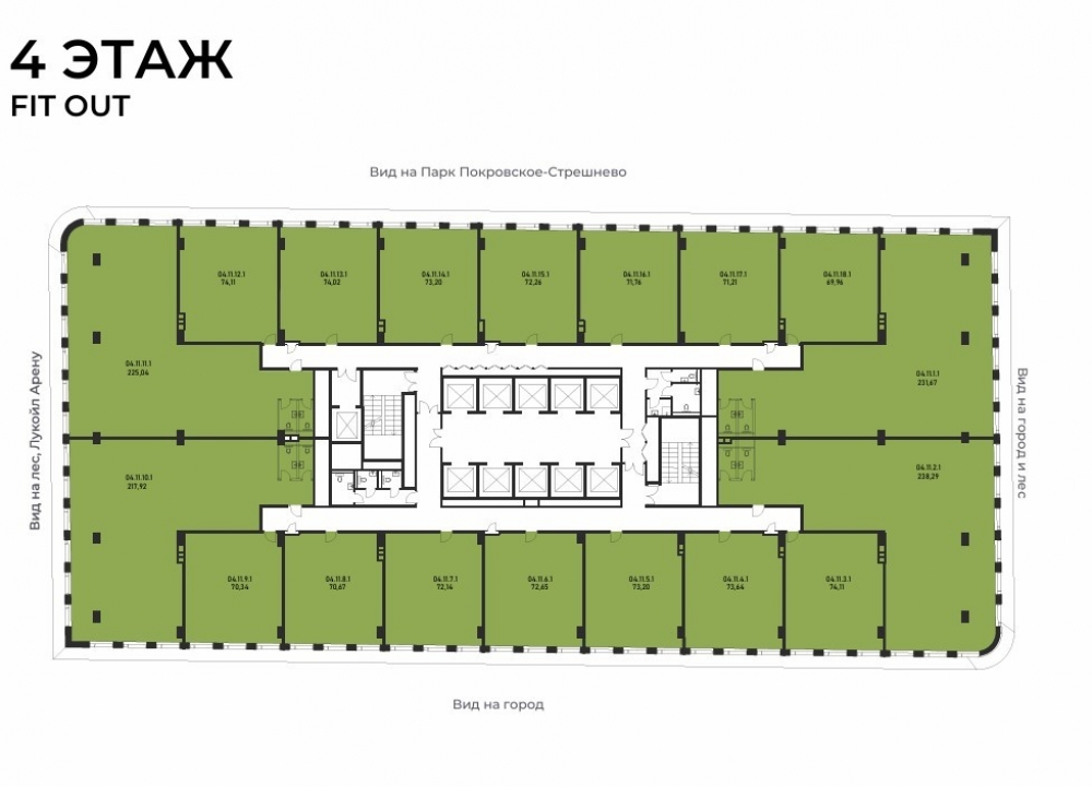 В рамках благоустройства запланировано создание площади с зонами отдыха, которая станет местом притяжения как для жителей близлежащих домов, так и для резидентов ДЖЕНГА. Количество лифтов 13. Шаг колонн 8.1 х 8.1.