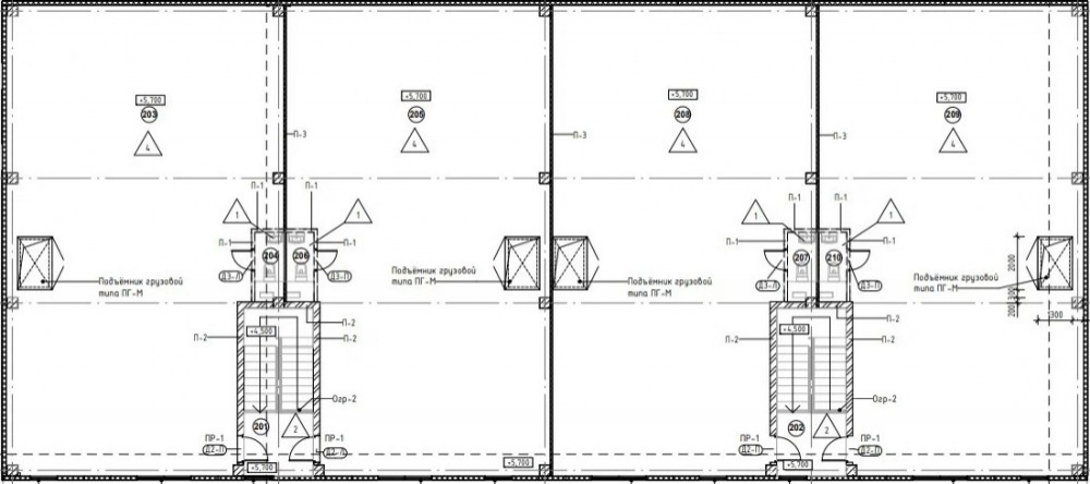 Нагрузка на пол: 5 тн (1 этаж), 1 тн (2 этаж).