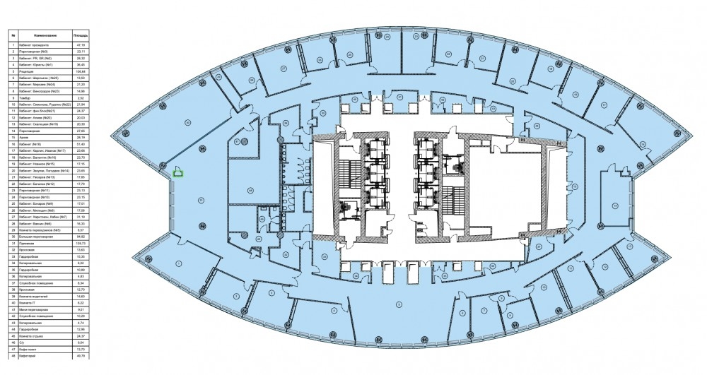 В аренду предлагается офис, занимающий весь 48-ой этаж блока С. Арендуемая площадь 1909м2, используемая 1704,4м2. Преимущетственно кабинетная планировка, установлена кухня, есть свои с/у. Ремонт качественный офисный за выездом арендатора. Офис сдается без мебели.