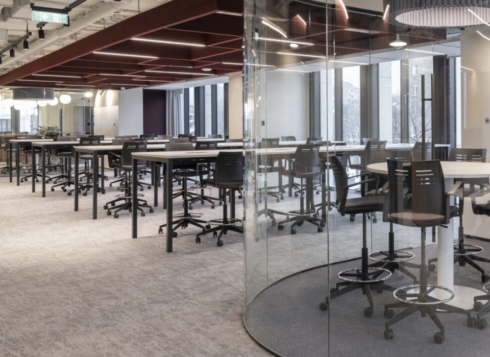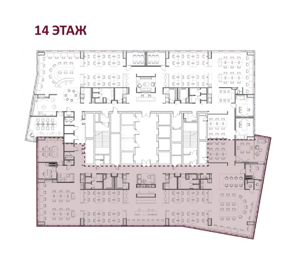Площадь офиса 749м2, расположен на 14-м этаже, смешанная планировка, свой с/у и кухня. Качественный офисный ремонт. Полностью меблирован и оборудован на 121 рабочее место.
