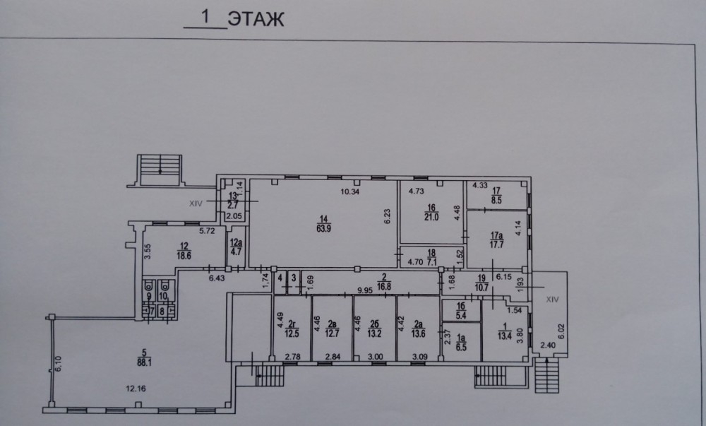 На первом этаже площадь 345 кв.м. планировка зально-кабинетная, три санузла. Потолки 3,5 метра. Очень светлые помещения в каждом кабинете окно, защищено рольставнями. Имеется два отдельных входа, центральный с крыльцом и задний с пандусом (зона погрузки-выгрузки). Возле пандуса - парковка с возможностью заезда легкого коммерческого транспорта, 7 машиномест. Рядом несколько парковок.