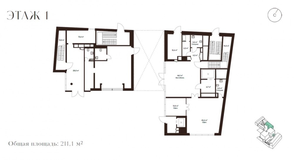 Эксклюзивное предложение идеально подойдет для размещения представительского офиса в собственности одного владельца.