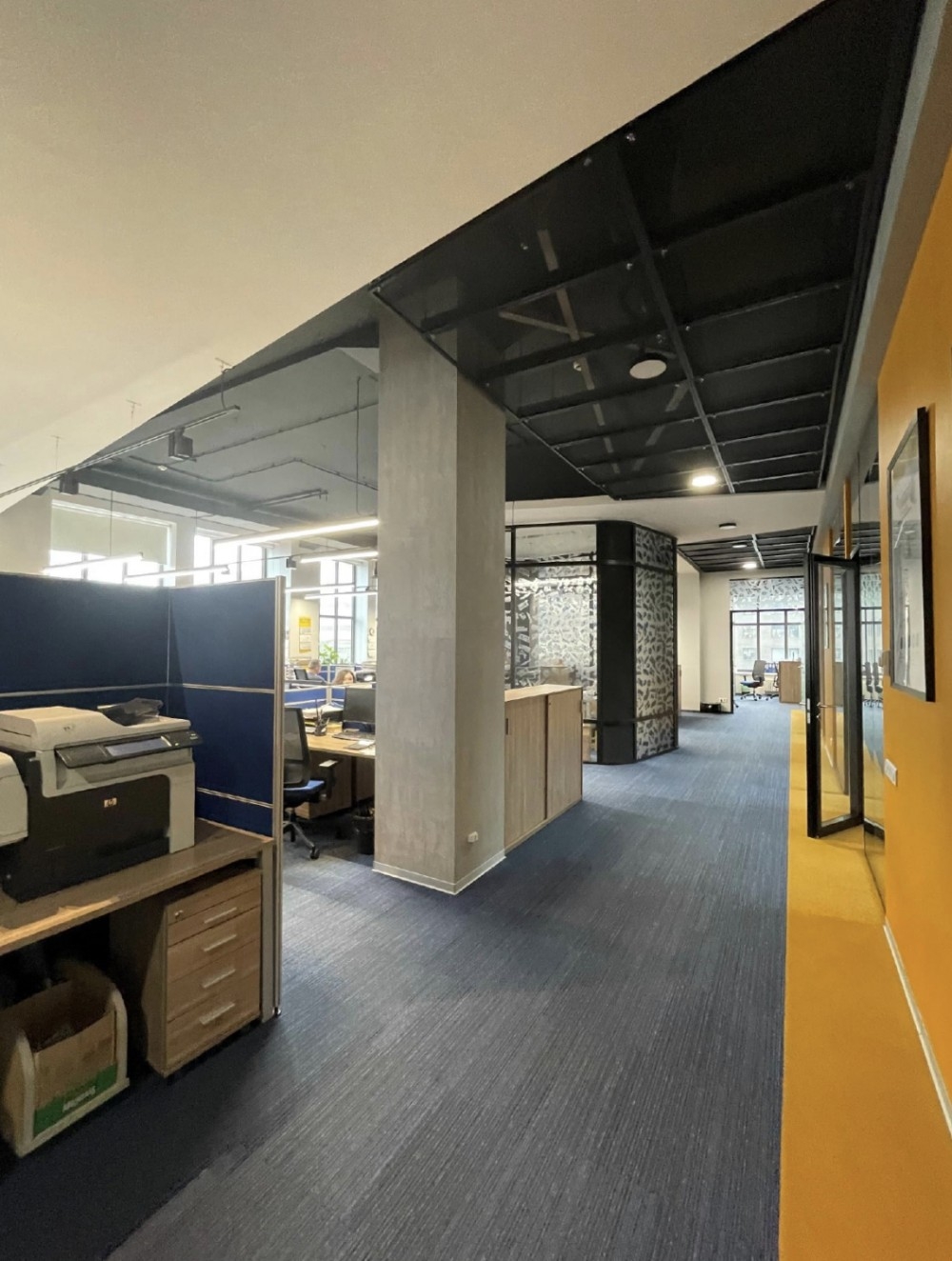 Офис расположен на 2-м этаже. Помещение смешанной планировки, своя кухня и с/у, качественный офисный ремонт за выездом арендатора. Установлена приточно-вытяжная вентиляция, кондиционирование.