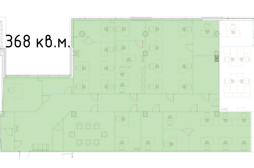 Строение 9, шестой этаж. Полезная площадь 368м2. Смешанная планировка: 7 кабинетов, переговорная, кухня. с/у на этаже. Выполнена офисная отделка. Установлены системы приторно-вытяжной вентиляции и кондиционирования.