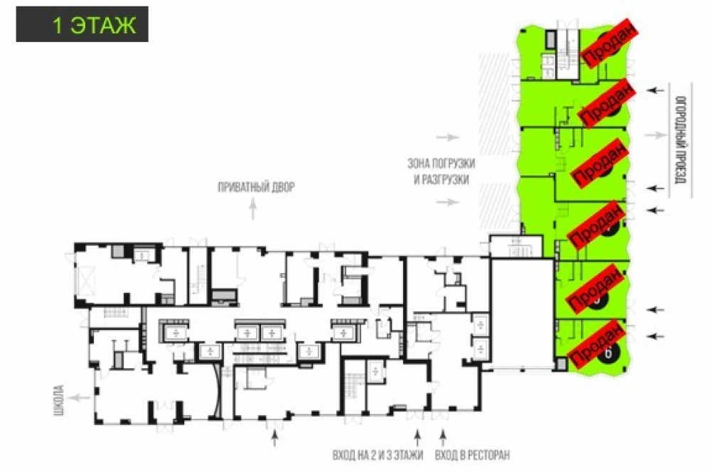 Зона разгрузки,Витрины,Место для рекламы,Проходное место,Проездное место