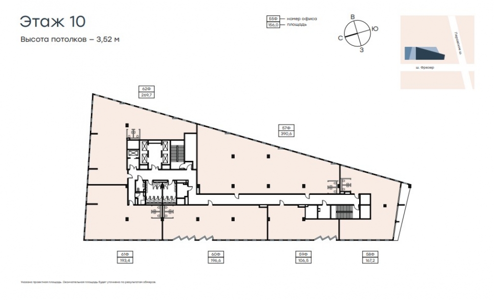 Продажа офисного помещения в Level work Нижегородская. В помещении есть свой с/у, на плане 57Ф. Офисы расположатся на этажах 3–14. Доступ будет осуществляться через отдельное лобби на первом этаже. Дополнительно существует возможность объединения нескольких смежных помещений. 8,4 × 8,4 м шаг колонн на офисных этажах.