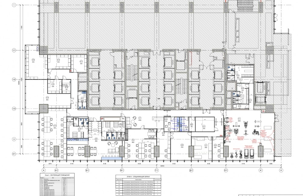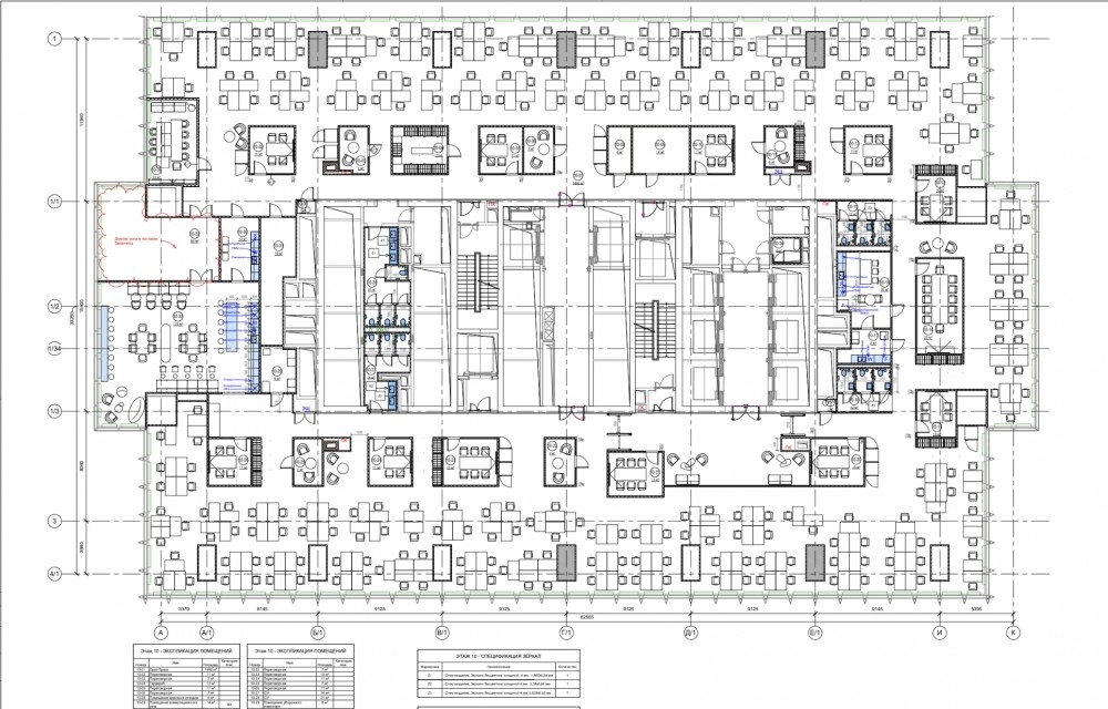 Офисные помещения общей площадью 21805.8м2 занимают несколько этажей, офисный ремонт за выездом арендатора, смешанная планировка.