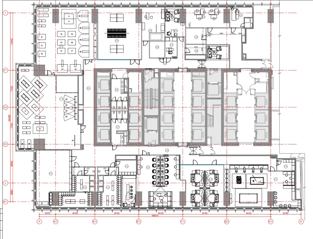 выполнена стандартная офисная отделка