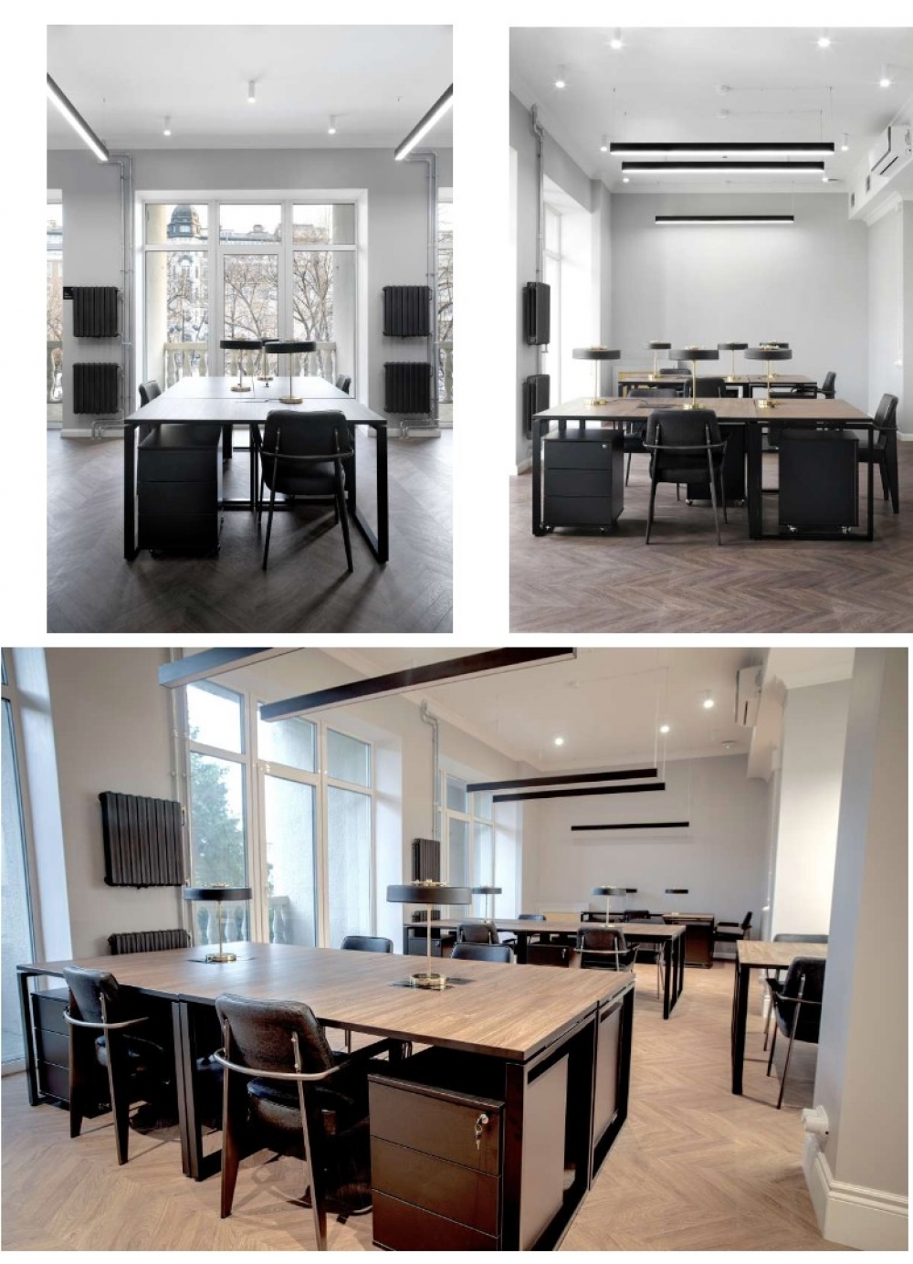 Офис рассчитан на 28 рабочих мест. Открытая планировка, дизайнерский ремонт и мебель. В здании приточно-вытяжная вентиляция и кондиционирование.