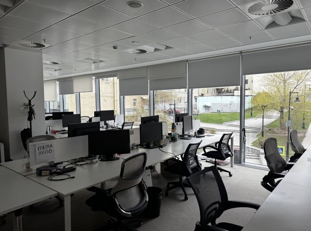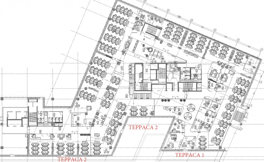 Офис расположен на 3-ом этаже, смешанная планировка, ремонт за выездом арендатора, есть зона кухни и с/у. Установлена приточно-вытяжная вентиляция и системы кондиционирования. Блок имеет выход на две индивидуальные террасы.