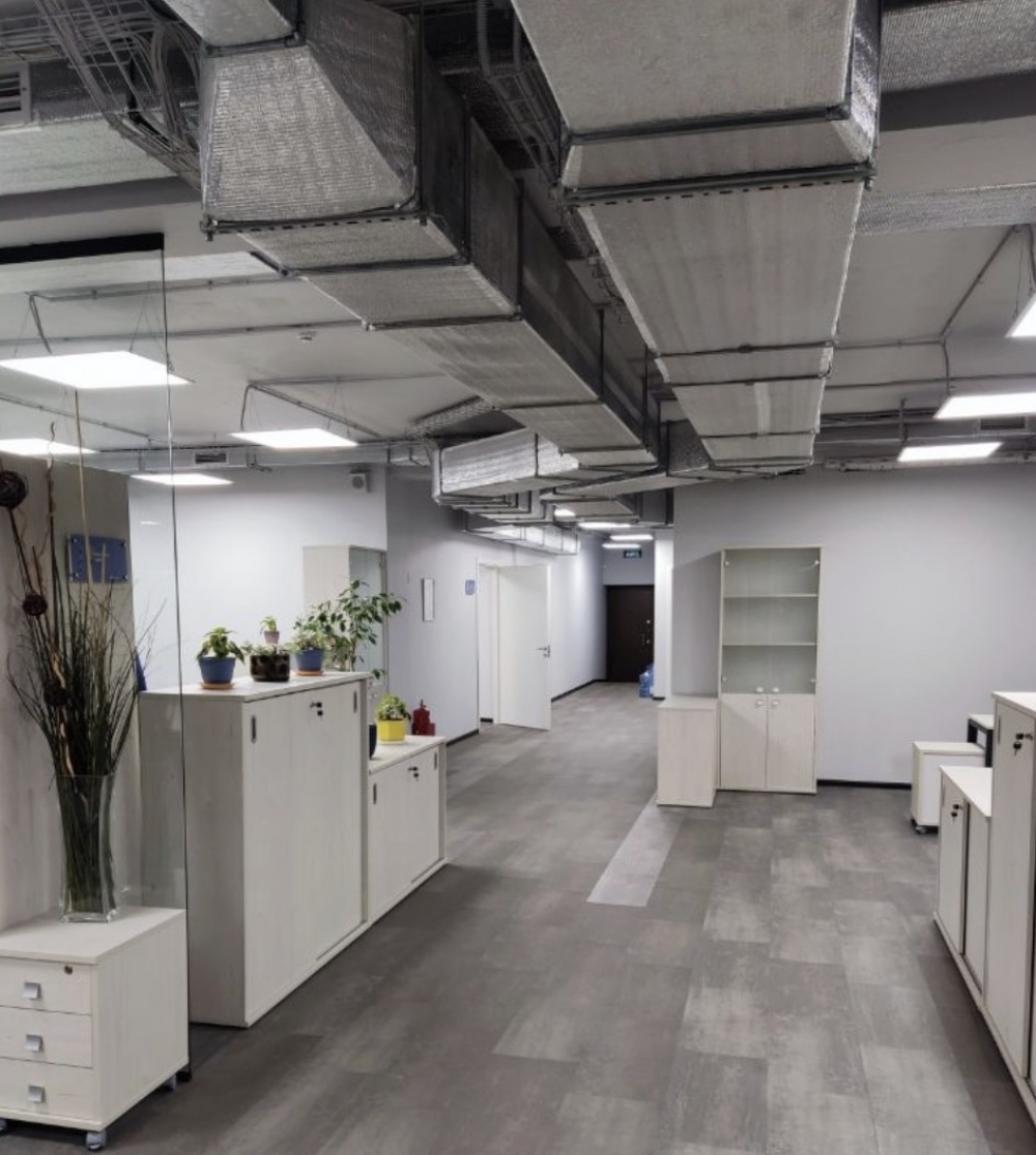 Смешанная планировка, первый этаж, офисная отделка за выездом арендатора, свой с/у. В здании приточно-вытяжная вентиляция, центральное кондиционирование.