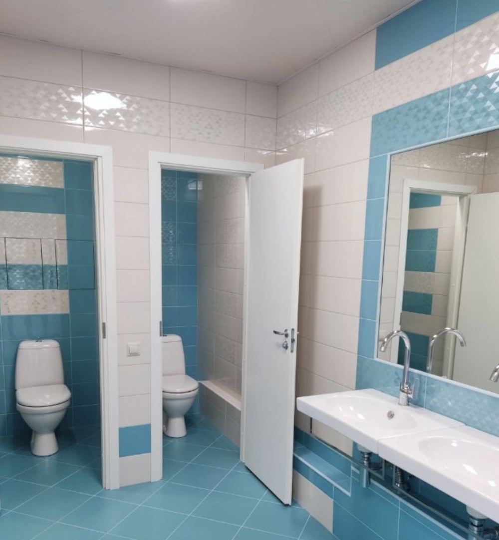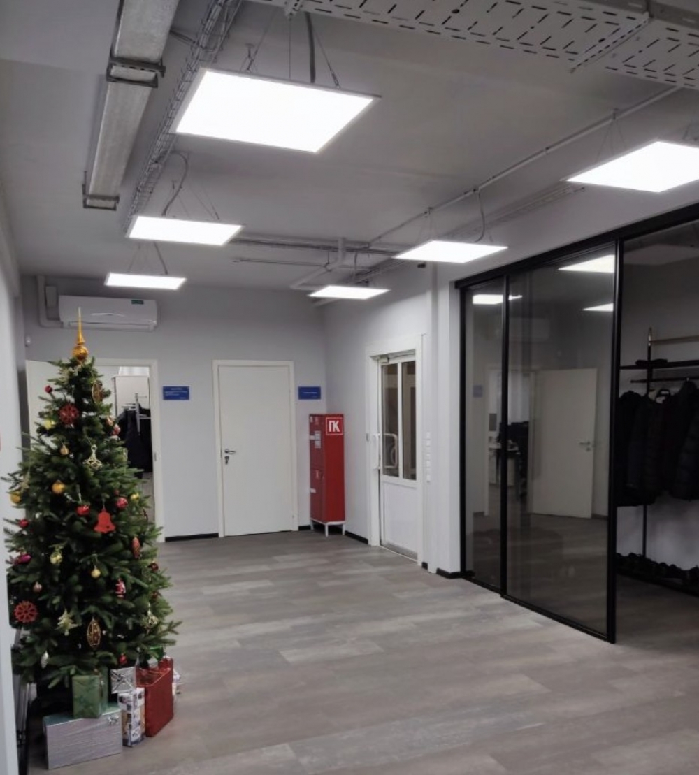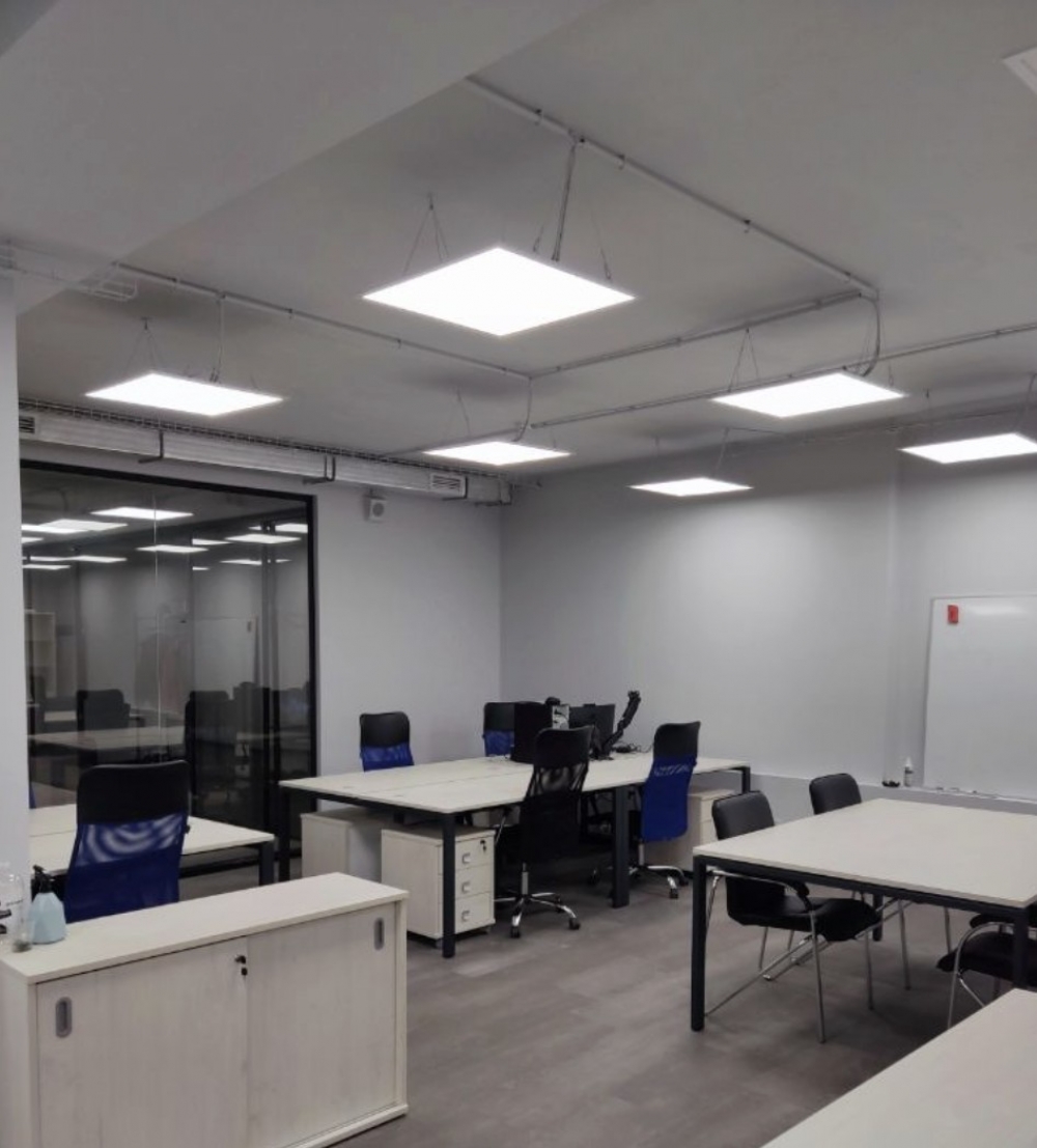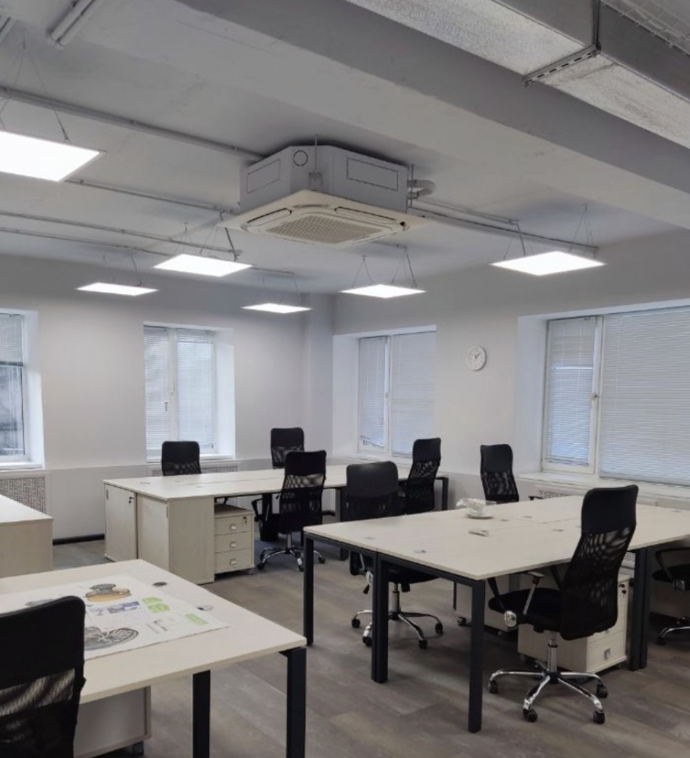 выполнена стандартная офисная отделка