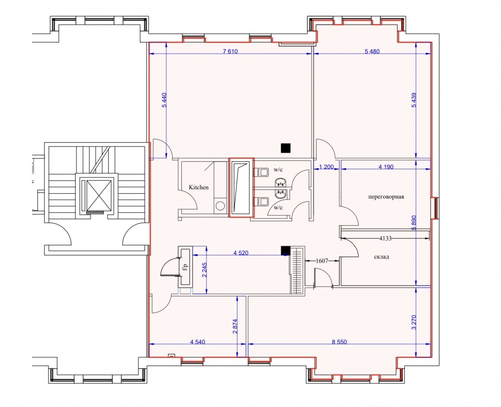 Офисный блок располагается на 3-м этаже, ремонт за выездом арендатора. Своя зона кухни и с/у. В здании приточно-вытяжная вентиляция, кондиционирование, высокие потолки.