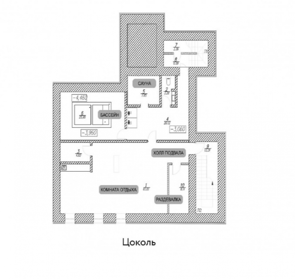 ресепшен и кухня. В цоколе организована зона отдыха с бассейном и сауной. В помещениях установлена вся необходимая мебель, высота потолков 3 метра, электрическая